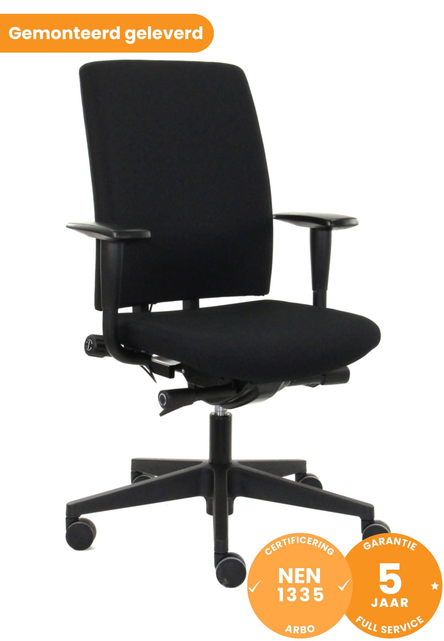 • Armleggers met klikbediening, instelbaar in hoogte, breedte en diepte