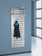 Deze moderne wandgarderobe combineert een strak design met praktische functies. De combinatie van stevig staal, elegante glasaccenten en voldoende opbergruimte maakt dit een ideale keuze voor entrees, kantoren of wachtkamers waar stijl en orde samenkomen.