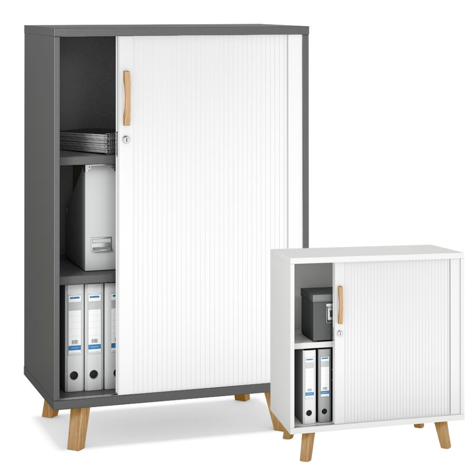De Smart Modul roldeurkasten bieden de perfecte combinatie van efficiënte ruimtebenutting en een warme, huiselijke uitstraling dankzij de houten poten en grepen. Deze kast is de ideale keuze voor wie op zoek is naar praktische opbergruimte zonder in te leveren op stijl. Perfect geschikt voor zowel kleinere werkplekken als moderne kantoren.