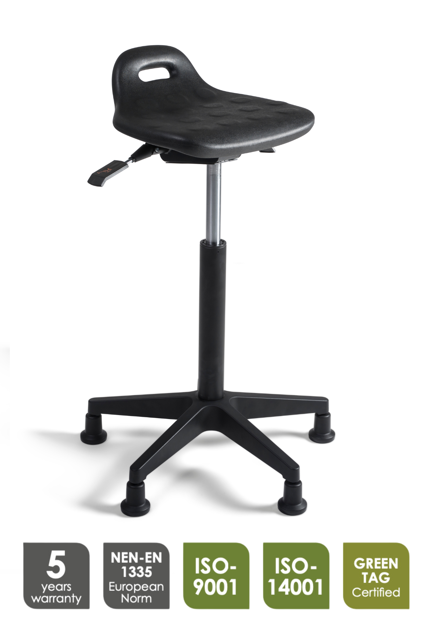 De Stahulp Stool 210 is een ideale oplossing voor werkplekken die flexibiliteit tussen zitten en staan vereisen. De ergonomisch gevormde PU-zitting biedt comfort en ondersteuning, terwijl het stevige kunststof onderstel met glijdoppen zorgt voor stabiliteit zonder wielen. Dankzij de verstelbare hoogte is deze stahulp geschikt voor diverse werkhoogtes en werkplekken, zoals laboratoria en productieomgevingen.