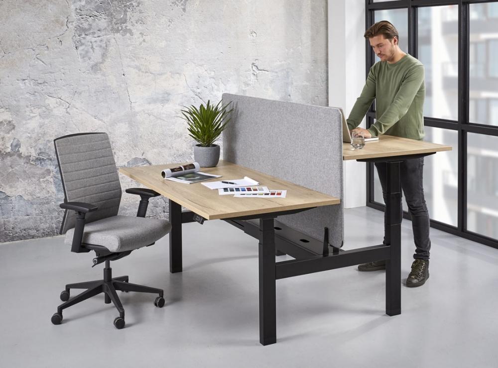 Dit elektrisch verstelbare duo bureau is dé oplossing voor moderne kantoren die flexibiliteit, ergonomie en teamwork willen combineren. Met twee afzonderlijk verstelbare werkplekken creëer je een gezonde en dynamische werkomgeving.